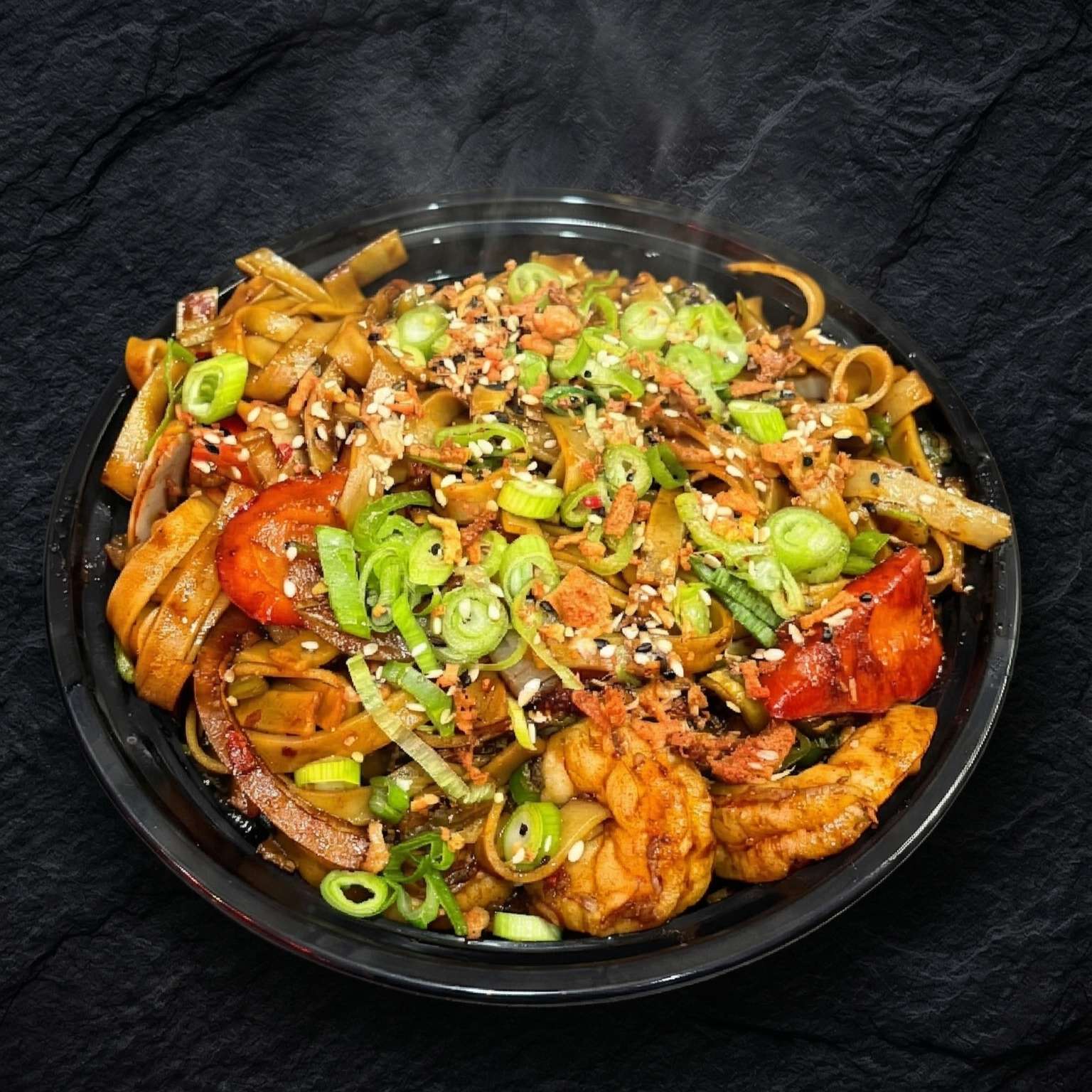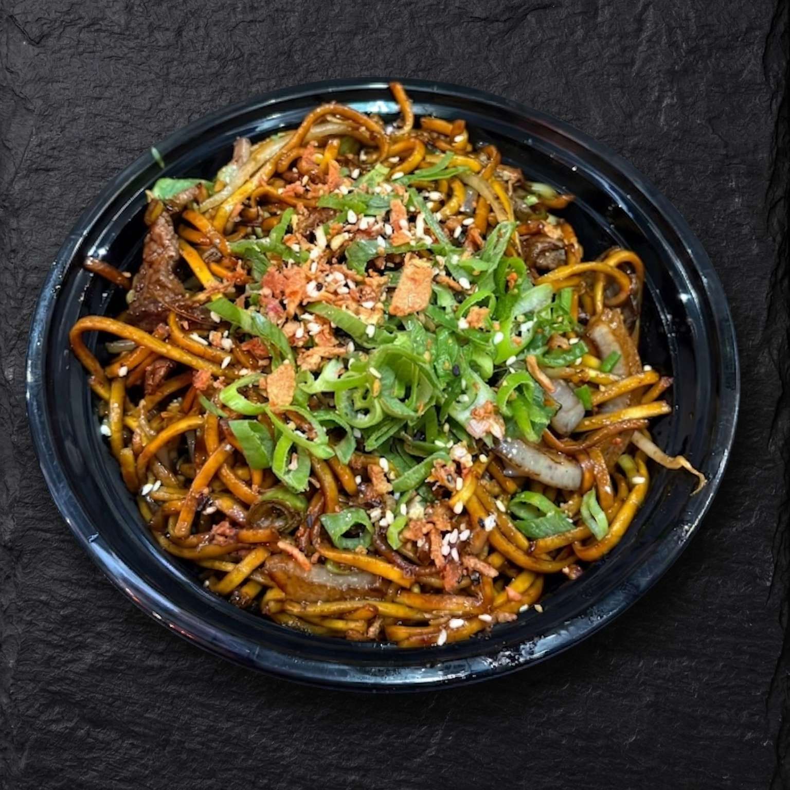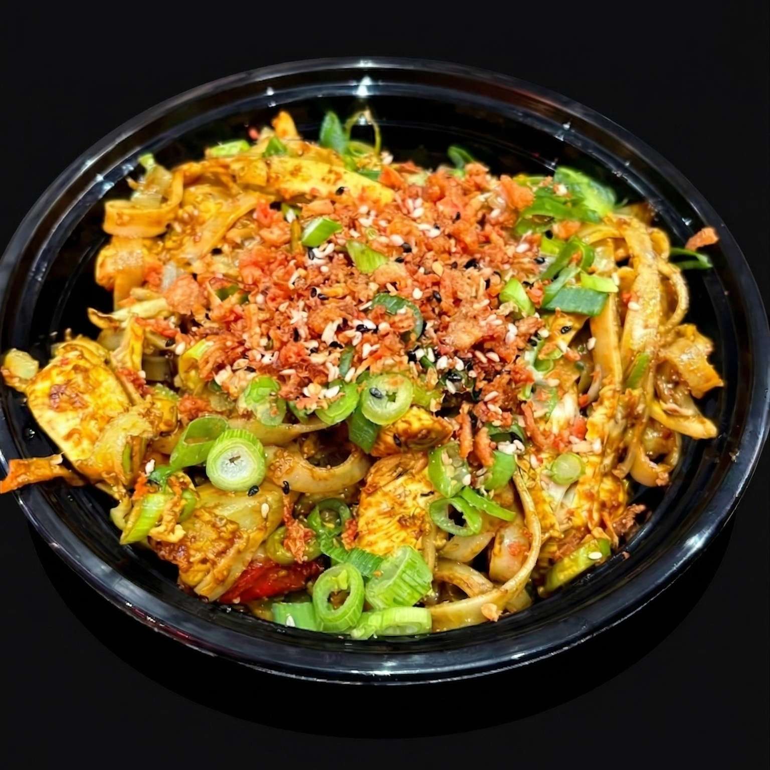 Egg noodles stir-fried with your choice of protein in a soy and sesame oil sauce