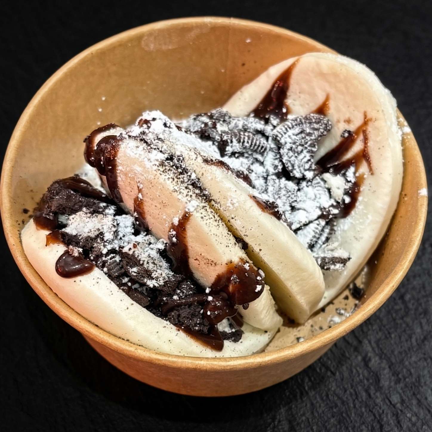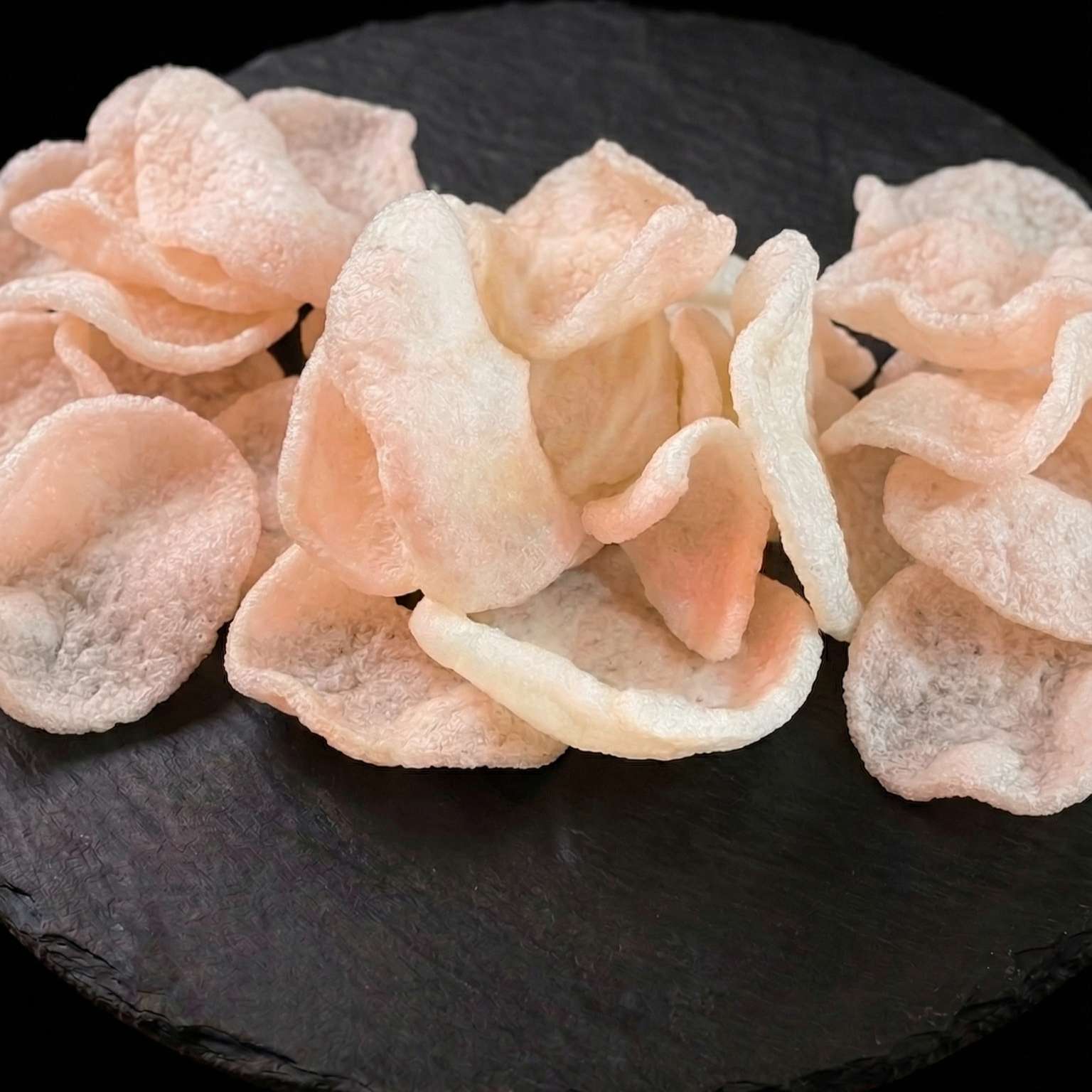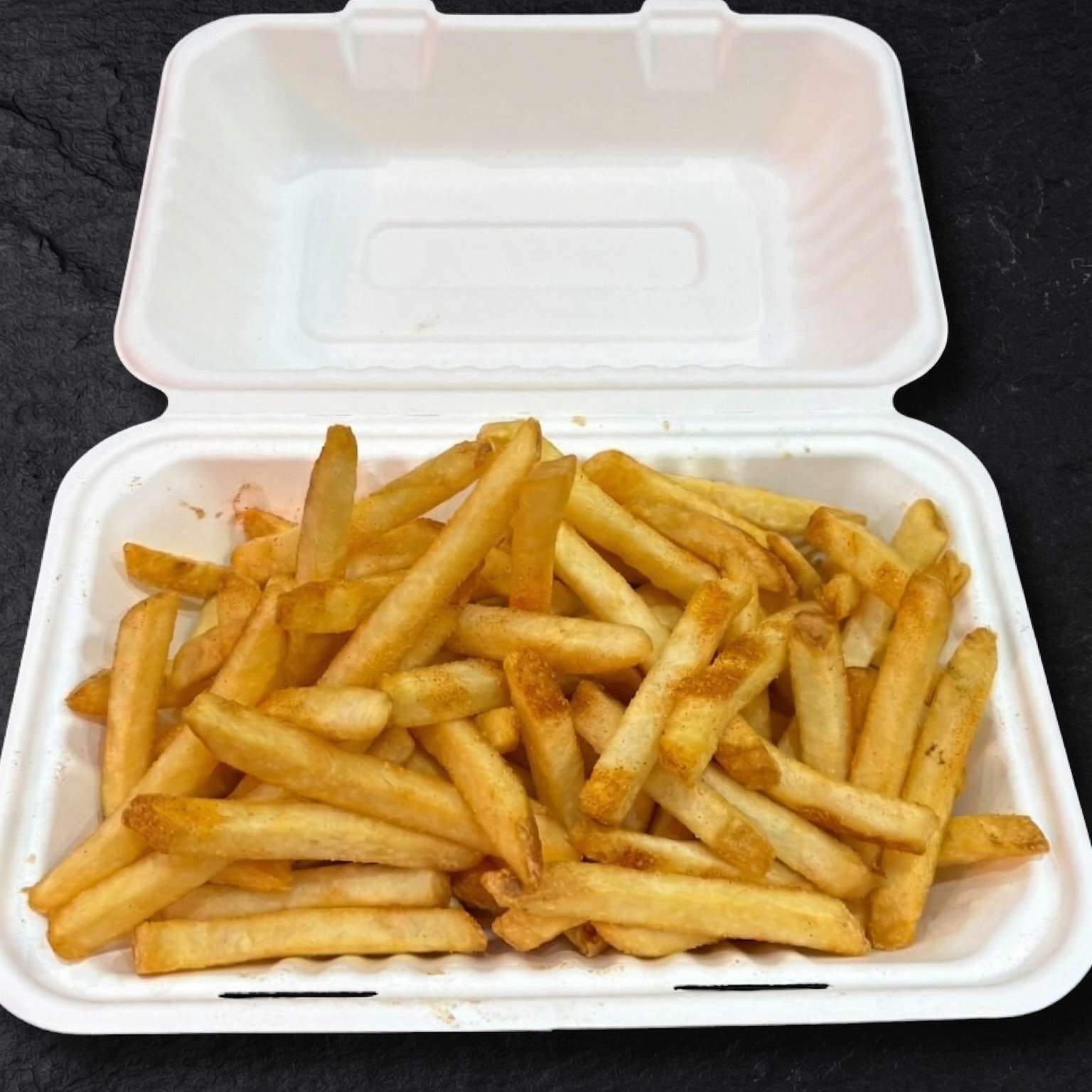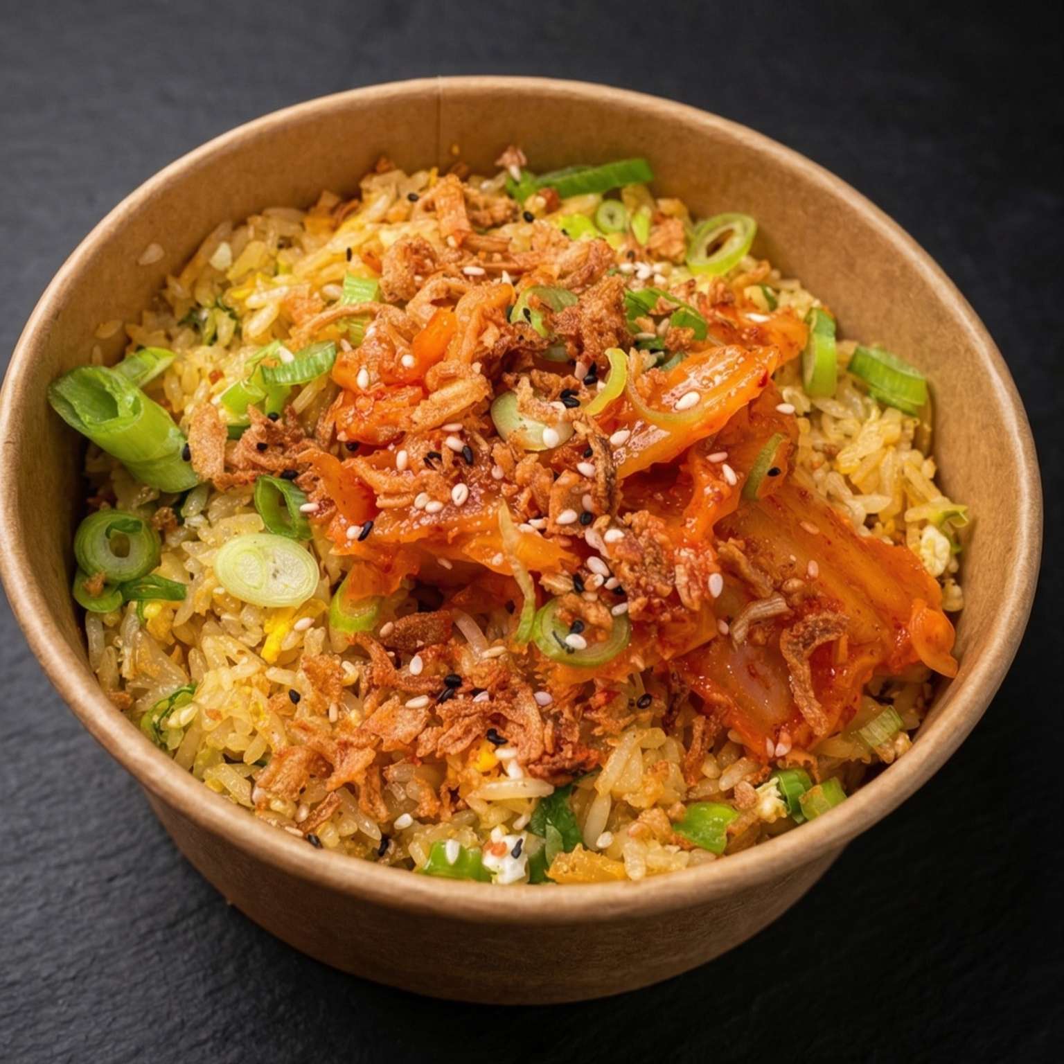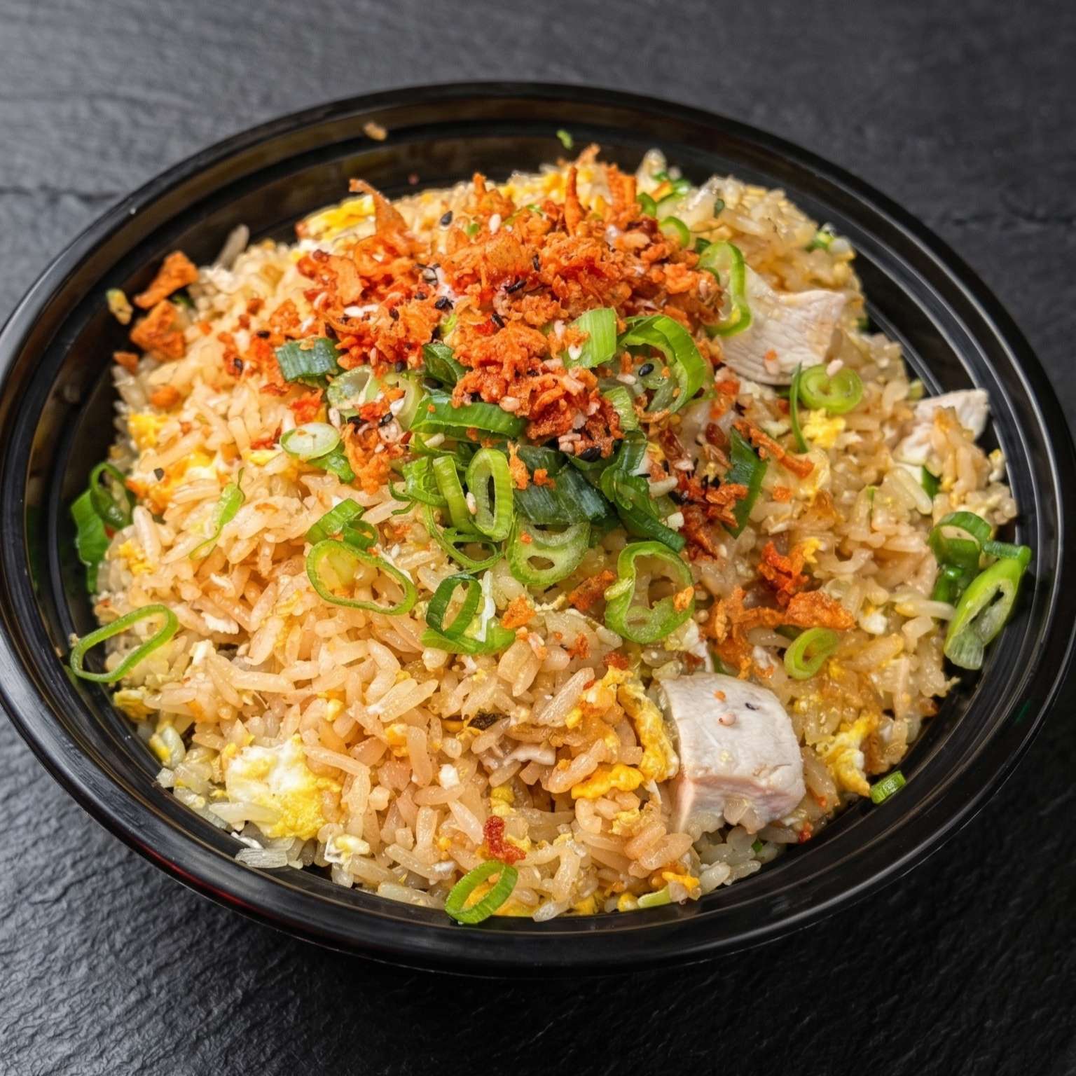 Salt and pepper chips, pulled beef, chicken, and tempura prawn with cheese, special sauce, spring onions, crispy onions, and sesame seeds – a must-try!